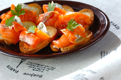 スモークサーモンタルティーヌ 副菜 のレシピ 作り方 E レシピ 料理のプロが作る簡単レシピ